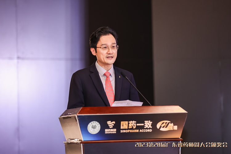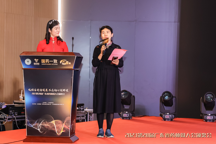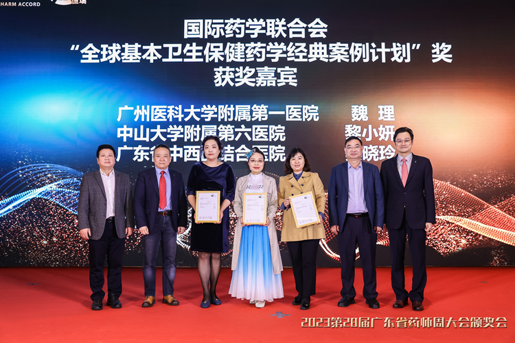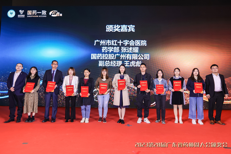 全省醫(yī)院藥學(xué)領(lǐng)域?qū)<掖?、各獲獎項(xiàng)目代表共200多人參加。廣東省藥品監(jiān)督管理局嚴(yán)振副局長、廣東省衛(wèi)生健康委藥政處李學(xué)鈞處長、國際藥學(xué)聯(lián)合會中國區(qū)總代表陳征宇院士等領(lǐng)導(dǎo)應(yīng)邀出席并致辭。國藥控股廣州有限公司王矗總經(jīng)理、江蘇恒瑞醫(yī)藥股份有限公司王亮經(jīng)理代表協(xié)辦單位出席并講話。頒獎會開幕式由廣州醫(yī)科大學(xué)附屬第一醫(yī)院魏理主任主持。