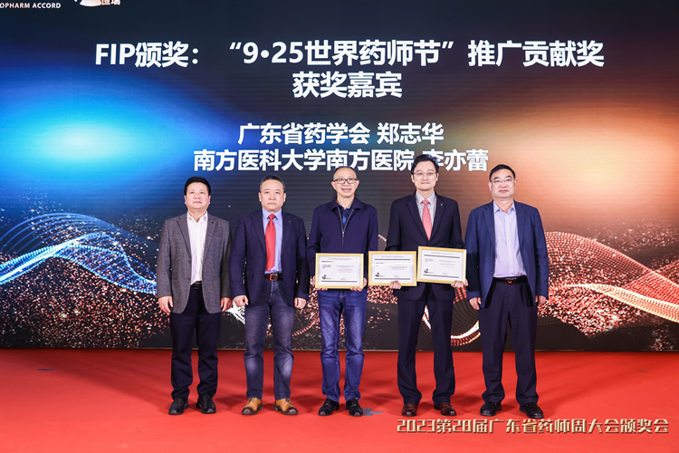 FIP駐中國總代表陳征宇院士不遠(yuǎn)千里,親臨頒獎大會。他在致辭中充分肯定了廣東省藥學(xué)會近年來在藥學(xué)服務(wù)中所作的探索性、創(chuàng)新性的工作,并鼓勵廣東省藥學(xué)會繼續(xù)向國際化邁進(jìn),積極參與國際交流,實(shí)現(xiàn)共商共建共享。會上,陳院士為廣東省藥學(xué)會和鄭志華、李亦蕾同志頒發(fā)“9?25世界藥師節(jié)”推廣貢獻(xiàn)獎;為魏理、黎小妍、吳曉玲頒發(fā)“全球基本衛(wèi)生保健藥學(xué)經(jīng)典案例計(jì)劃”入選證書,這是國際藥學(xué)界對我省藥學(xué)工作的肯定,也是對我們今后工作的鞭策!