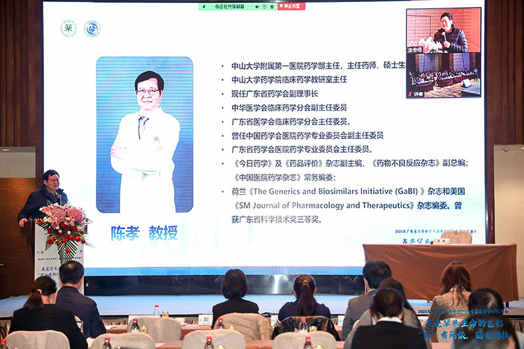 廣東省藥學(xué)會(huì)副理事長(zhǎng)、中山大學(xué)附屬第一醫(yī)院主任藥師陳孝教授致辭