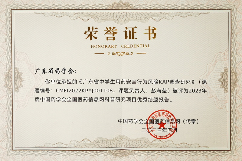 廣東省藥師團隊2項課題榮獲中國藥學會全國醫(yī)藥信息網(wǎng)科普研究重點項目優(yōu)秀結題報告