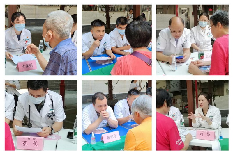 李學(xué)軍、黃郁凱、賴俊、劉婷等數(shù)位醫(yī)師面對(duì)居民密集的問(wèn)詢,悉心作答。評(píng)估治療方案的合理性、當(dāng)前治療效果,同時(shí)給予積極的生活方式干預(yù)建議。擅長(zhǎng)慢病管理的楊水源藥師與李素娟藥師對(duì)于合并多種慢性疾病、用藥方案復(fù)雜的患者,對(duì)其服用藥品進(jìn)行梳理,對(duì)每一種藥物的服藥劑量、頻次、具體服藥時(shí)間及注意事項(xiàng)等,進(jìn)行明確標(biāo)注和詳細(xì)講解,從而提高用藥依從性,保證治療效果,落實(shí)用藥安全。鄭純護(hù)師負(fù)責(zé)對(duì)有需求的居民進(jìn)行血壓、血糖測(cè)試及日常護(hù)理宣教。在義診過(guò)程中,患者所問(wèn)事事有著落、句句有回音,進(jìn)一步提升了患者參與的積極性。