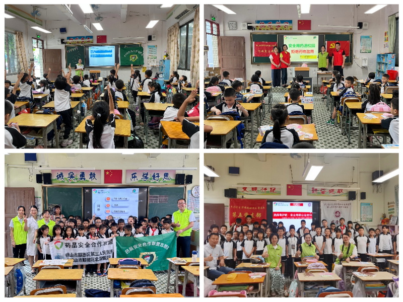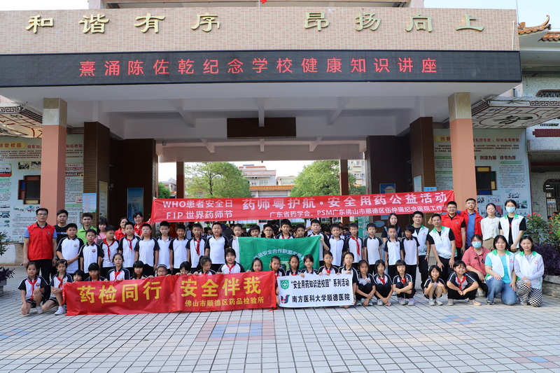 在第五個(gè)“世界患者安全日”和第十五個(gè)“世界藥師節(jié)”來臨之際,2023年9月19日下午,順德區(qū)衛(wèi)生健康局和區(qū)市場(chǎng)監(jiān)督管理局聯(lián)合組織PSM佛山站順德區(qū)內(nèi)13家醫(yī)院藥師工作站志愿者到順德區(qū)倫教熹涌陳佐乾紀(jì)念學(xué)校,開展“安全用藥知識(shí)進(jìn)校園”系列活動(dòng)。參與活動(dòng)單位包括:順德區(qū)藥品檢驗(yàn)所、佛山市順德區(qū)伍仲珮紀(jì)念醫(yī)院、南方醫(yī)科大學(xué)順德醫(yī)院、廣州中醫(yī)藥大學(xué)順德醫(yī)院、廣東醫(yī)科大學(xué)順德婦女兒童醫(yī)院、佛山市順德區(qū)慢性病防治中心、暨南大學(xué)附屬順德醫(yī)院、佛山市順德區(qū)第三人民醫(yī)院、廣東醫(yī)科醫(yī)科大學(xué)附屬第三醫(yī)院、南方醫(yī)科大學(xué)順德醫(yī)院附屬陳村醫(yī)院、廣州中醫(yī)藥大學(xué)順德醫(yī)院附屬勒流醫(yī)院、順德區(qū)樂從醫(yī)院、順德區(qū)倫教醫(yī)院。