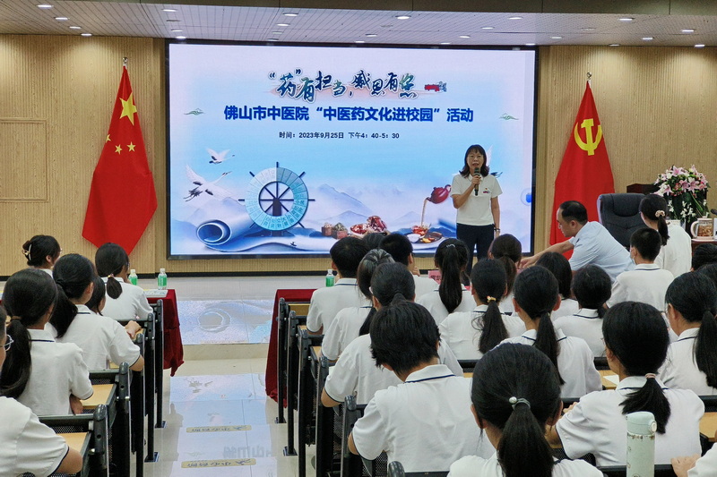 當(dāng)天下午,藥務(wù)科組織團(tuán)隊(duì)到佛山市汾江中學(xué)開展“中醫(yī)藥文化進(jìn)校園”宣傳教育活動(dòng),科普生活中常見的中醫(yī)藥知識(shí)。