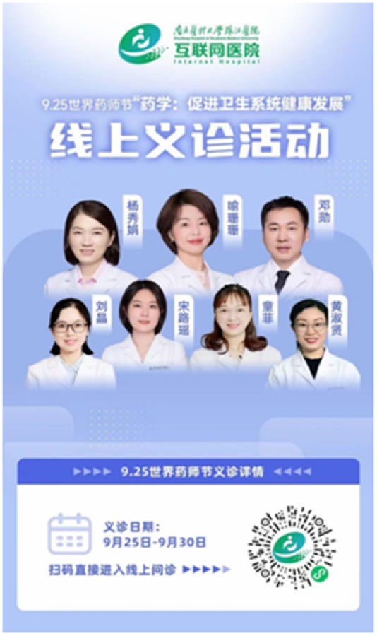 為迎接第15個(gè)“世界藥師節(jié)”,PSM南方醫(yī)科大學(xué)珠江醫(yī)院分站于9月25日上午在門診一樓大廳開(kāi)展了“藥師粵護(hù)航?安全用藥公益活動(dòng)”。本次活動(dòng)主題為“安全用藥,患者參與;藥師護(hù)航,全民健康”,內(nèi)容包含藥學(xué)義診、用藥安全科普宣講及互聯(lián)網(wǎng)醫(yī)院線上義診。