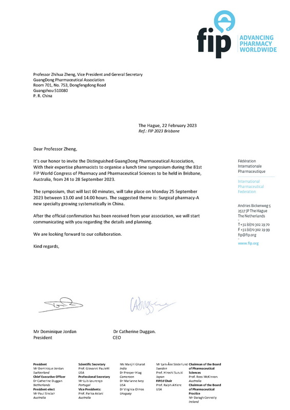 圖13 國際藥學聯(lián)合會(FIP)關于協(xié)助組織第81屆世界藥學大會外科藥學論壇邀請函