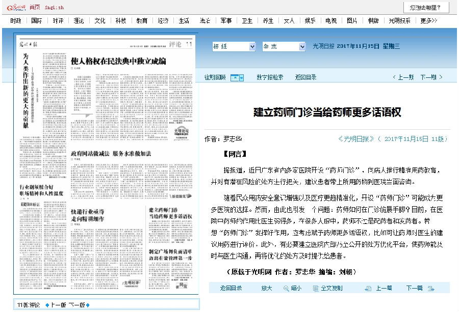 圖8 2017年11月《光明日?qǐng)?bào)》報(bào)道了廣東的藥師門診