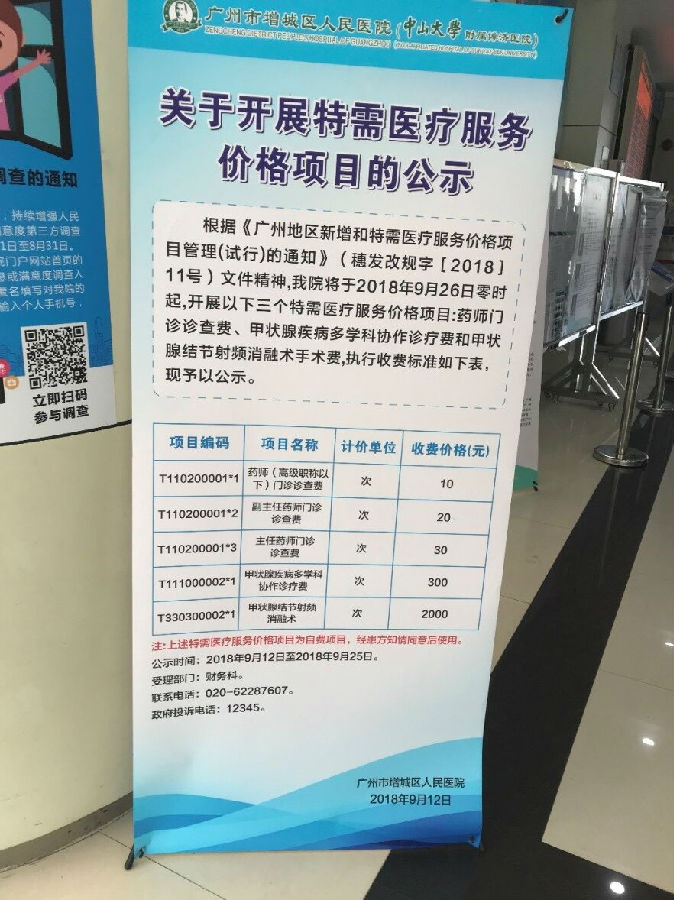 2018年9月,根據(jù)廣州市發(fā)改委、廣州市衛(wèi)計(jì)委《廣州地區(qū)新增和特需醫(yī)療服務(wù)價(jià)格項(xiàng)目管理辦法(試行)》(穗發(fā)改規(guī)字〔2018〕11號(hào))要求,廣州市增城區(qū)人民醫(yī)院將藥師門診診查費(fèi)成功備案,成為國(guó)內(nèi)第一個(gè)被政府認(rèn)可的藥學(xué)門診收費(fèi)。