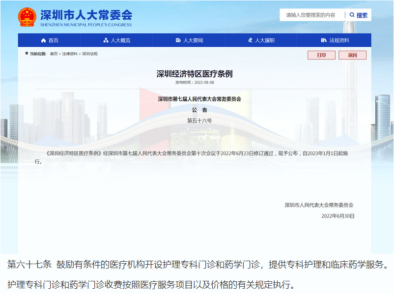 圖14 2022年6月藥學(xué)門診寫(xiě)入《深圳經(jīng)濟(jì)特區(qū)醫(yī)療條例》,代表藥學(xué)門診入法