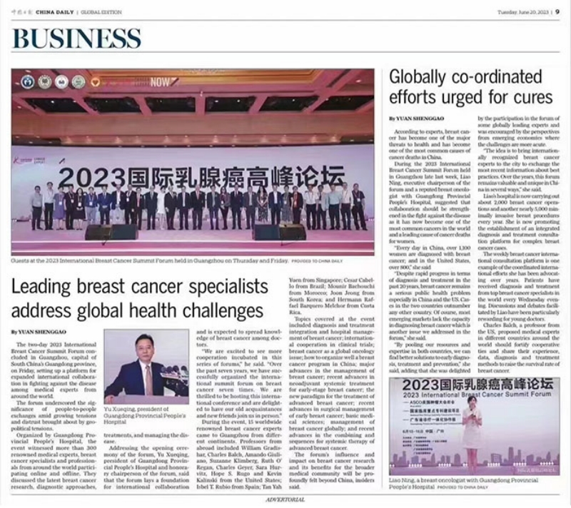 論壇內(nèi)容豐富,兼具廣度和深度,通過線上與線下相結(jié)合的方式,吸引了超過89萬人觀看,受到了媒體的廣泛關(guān)注,并獲得了《China Daily》的專題報(bào)道。報(bào)道稱,論壇的聚焦國際化,多學(xué)科交叉,強(qiáng)調(diào)醫(yī)學(xué)等各人文領(lǐng)域的交流顯得尤為重要,并指出本次論壇將給中國乃至世界的乳腺癌研究帶來巨大沖擊,并對(duì)更廣泛的醫(yī)學(xué)界帶來深遠(yuǎn)的影響。