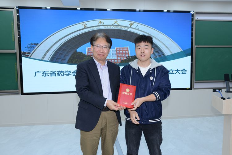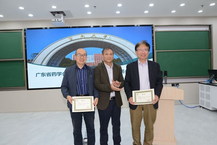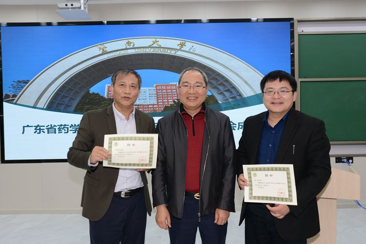 廣東省藥學(xué)會陳民喜書記兼執(zhí)行秘書長給章偉光、高昊頒發(fā)聘書