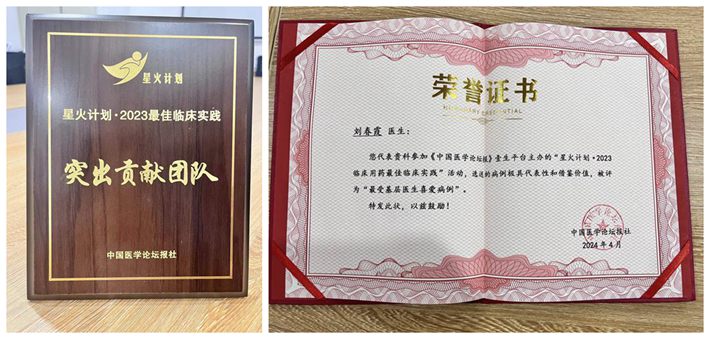 劉春霞主任藥師組織選送的病例《柳暗花明又一村,伏立康唑個體化用藥監(jiān)護一例》榮獲中國醫(yī)學論壇報“最受基層醫(yī)生喜愛病例”“星火計劃·2023最佳臨床實踐突出貢獻團隊”榮譽,為基層醫(yī)生提供了寶貴的臨床經(jīng)驗和用藥指導,充分展示了藥學部在臨床藥學實踐中的成果和影響力。