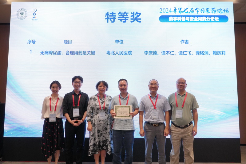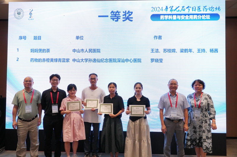 最后是激動(dòng)人心的藥學(xué)科普視頻頒獎(jiǎng)環(huán)節(jié)。經(jīng)過(guò)激烈角逐,現(xiàn)場(chǎng)專(zhuān)家認(rèn)真評(píng)選,粵北人民醫(yī)院藥學(xué)部科普?qǐng)F(tuán)隊(duì)李慶德、譚本仁、譚仁飛、龔銘炯、賴(lài)輝莉等選送的“無(wú)痛降尿酸,合理用藥是關(guān)鍵”斬獲特等獎(jiǎng);中山市人民醫(yī)院藥學(xué)部科普?qǐng)F(tuán)隊(duì)王潔、蘇桂嫦、梁鶴年、王持、楊茜等選送的“媽媽煲的茶”、中山大學(xué)孫逸仙紀(jì)念醫(yī)院深汕中心醫(yī)院藥學(xué)部科普?qǐng)F(tuán)隊(duì)羅曉瑩藥師等選送的“藥物的赤橙黃綠青藍(lán)紫”分別榮獲一等獎(jiǎng);陽(yáng)江市人民醫(yī)院藥學(xué)部科普?qǐng)F(tuán)隊(duì)黃碧珠、梁華丹、梁一彪、付存有、付子瑞等選送的“胃藥為何反傷胃”、東莞市人民醫(yī)院李宇揚(yáng)作品“孩子發(fā)燒別坑娃—退燒必修課”、深圳市人民醫(yī)院藥學(xué)部科普?qǐng)F(tuán)隊(duì)馮春馳、林佳、郭光杰等選送的“藥師教您一招,煎煮不再“煎熬”分別榮獲二等獎(jiǎng);中山大學(xué)附屬第六醫(yī)院區(qū)藥學(xué)部科普?qǐng)F(tuán)隊(duì)穎涓、廖小媚、鄺宇君等選送的“小兒用藥大講究”、廣州醫(yī)科大學(xué)附屬第五醫(yī)院彭丹選送的“甄嬛傳之黃褐斑”、東莞市人民醫(yī)院謝彥媛選送的“坑娃式喂藥,要不得”、中山大學(xué)孫逸仙紀(jì)念醫(yī)院深汕中心醫(yī)院藥學(xué)部科普?qǐng)F(tuán)隊(duì)林俊強(qiáng)、吳文格、陳秋麗等選送的“兒童用藥無(wú)小事”、廣州醫(yī)科大學(xué)附屬第四醫(yī)院鄧麗華、劉穩(wěn)等選送的“關(guān)于益生菌的正確用法”分別榮獲三等獎(jiǎng);中山大學(xué)孫逸仙紀(jì)念醫(yī)院深汕中心醫(yī)院、東莞市人民醫(yī)院、東莞東華醫(yī)院、廣東省婦幼保健院、廣州醫(yī)科大學(xué)附屬第五醫(yī)院、廣州醫(yī)科大學(xué)附屬第一醫(yī)院、中山市小欖人民醫(yī)院、珠海市婦幼保健院、廣州醫(yī)科大學(xué)附屬第四醫(yī)院、惠州市中心人民醫(yī)院、汕頭大學(xué)醫(yī)學(xué)院第一附屬醫(yī)院等11個(gè)單位分別榮獲科普單位組織優(yōu)秀獎(jiǎng)。