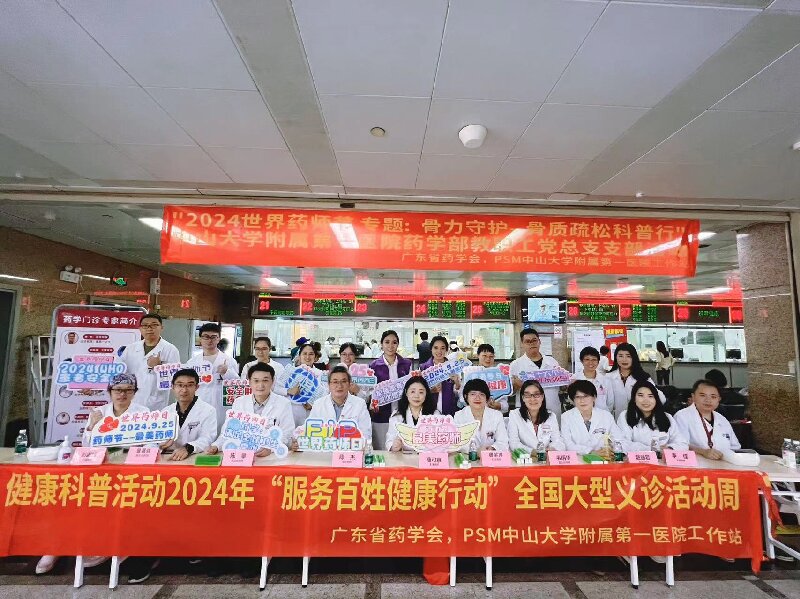 在藥師節(jié)當天上午,中山大學附屬第一醫(yī)院、廣州醫(yī)科大學附屬市八醫(yī)院、廣州市正骨醫(yī)院均在各自醫(yī)院門診大廳開展骨質(zhì)疏松科普主題的義診活動。