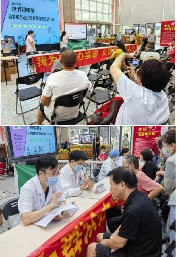 活動伊始,資深臨床藥師郭茵藥師和毛楠藥師分別分享了《藥品基本知識和藥品說明書》《抗高血壓藥的合理使用》兩場生動有趣又實用的健康講座,現(xiàn)場座無虛席,不少群眾都舉起手機記錄。
