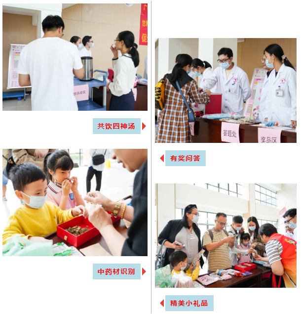 活動現(xiàn)場準備了四神湯供群眾們飲用品嘗,并且精心設計了有獎問答互動游戲。群眾通過解答西藥與中藥的用藥小問題、識別中藥材、追蹤用藥不良反應和食物禁忌來獲得小禮品,其中小禮品中的中藥香囊深受群眾們的歡迎,都選擇該小禮品,由自己動手將艾葉、廣藿香、蒼術等中藥藥材塞進香囊中,讓群眾們了解了中藥的特性和用途,感受到了博大精深的中醫(yī)文化魅力。