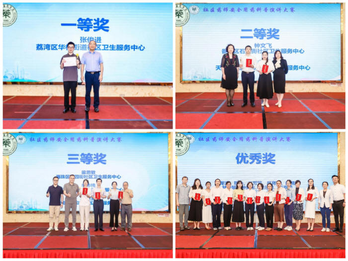 經(jīng)過(guò)激烈角逐,最終由荔灣區(qū)華林街社區(qū)衛(wèi)生服務(wù)中心的張俊進(jìn)榮獲一等獎(jiǎng);番禺區(qū)石壁街社區(qū)衛(wèi)生服務(wù)中心的鐘文飛與天河區(qū)石牌街華師社區(qū)衛(wèi)生服務(wù)中心的李洋獲得二等獎(jiǎng);海珠區(qū)沙園街社區(qū)衛(wèi)生服務(wù)中心的梁思敏、天河區(qū)冼村街社區(qū)衛(wèi)生服務(wù)中心的李沛楠以及黃浦區(qū)永和街社區(qū)衛(wèi)生服務(wù)中心的趙淑賢獲得三等獎(jiǎng);越秀區(qū)北京街社區(qū)衛(wèi)生服務(wù)中心伍彧等12位藥師獲得優(yōu)秀獎(jiǎng)。