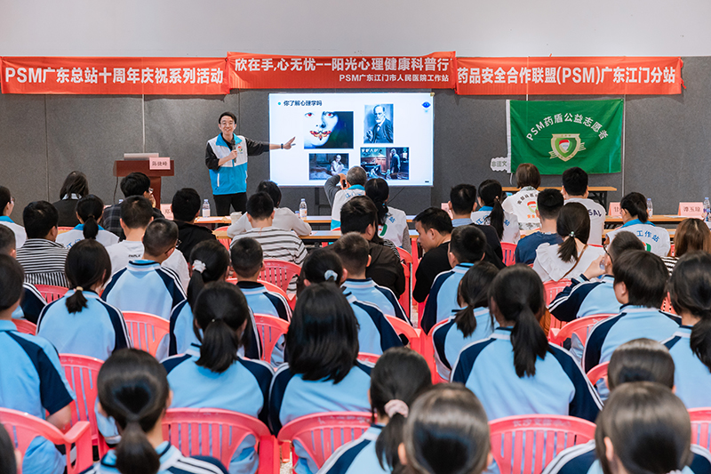 為配合省科協(xié)“百千萬(wàn)工程”縱向幫扶工作開(kāi)展,同時(shí)進(jìn)一步加強(qiáng)民眾特別是青年學(xué)生心理健康知識(shí)的普及,提高公眾對(duì)心理健康的重視,普及合理用藥知識(shí),增強(qiáng)公眾的應(yīng)急處理能力。3月21日,在陽(yáng)春三月、萬(wàn)物蓬勃生長(zhǎng)之際,由廣東省藥學(xué)會(huì)、江門(mén)市藥學(xué)會(huì)、PSM 廣東江門(mén)分站、開(kāi)平市科工商務(wù)局、開(kāi)平市科學(xué)技術(shù)協(xié)會(huì)、蒼江志愿者之家在江門(mén)開(kāi)平成功舉辦了“欣在手,心無(wú)憂(yōu)”陽(yáng)光心理健康科普行暨急救技能公益行動(dòng)的科普公益活動(dòng)。