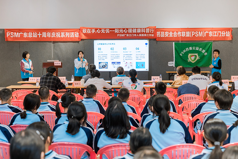 活動(dòng)由開(kāi)平市科工商務(wù)局副局長(zhǎng)饒恒、PSM 廣東江門(mén)分站站長(zhǎng)甘美嬋共同主持。開(kāi)平市委副書(shū)記耿洪波、省藥學(xué)會(huì)書(shū)記陳民喜、江門(mén)市藥學(xué)會(huì)理事長(zhǎng)鄭國(guó)燊、PSM廣東站長(zhǎng)吳新榮等領(lǐng)導(dǎo)出席并致辭。與會(huì)領(lǐng)導(dǎo)高度肯定了本次活動(dòng)的社會(huì)意義,強(qiáng)調(diào)了科普知識(shí)傳播的重要性,并指出心理健康是個(gè)人成長(zhǎng)和社會(huì)和諧的重要基石、應(yīng)積極倡導(dǎo)陽(yáng)光心態(tài),通過(guò)正確認(rèn)識(shí)自我、建立良好人際關(guān)系、管理情緒壓力等方式,培養(yǎng)積極心理品質(zhì)。