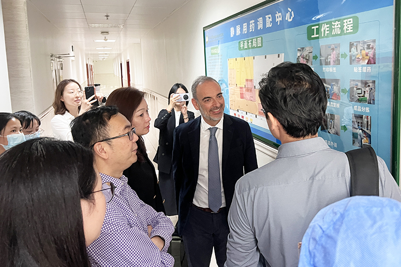 下午,卡瓦科教授一行4人在本會(huì)鄭志華秘書(shū)長(zhǎng)陪同下前往中山大學(xué)孫逸仙紀(jì)念醫(yī)院參訪交流。首先在藥學(xué)部與伍俊妍主任、邱凱鋒副主任、余曉霞副主任及該院部分藥學(xué)專家舉行了學(xué)術(shù)交流會(huì)。鄭志華秘書(shū)長(zhǎng)和吳靄琳秘書(shū)長(zhǎng)分別為會(huì)議致辭,邱凱鋒副主任介紹了醫(yī)院藥學(xué)部基本概況及近年在藥學(xué)服務(wù)方面開(kāi)展的特色服務(wù)項(xiàng)目和取得的成績(jī)。卡瓦科教授介紹了葡萄牙藥學(xué)工作模式及他的專業(yè)研究方向。與會(huì)專家還就藥學(xué)服務(wù)內(nèi)容、模式、發(fā)展方向等進(jìn)行了學(xué)術(shù)探討。會(huì)后,實(shí)地參訪了醫(yī)院的智慧化藥房、GCP一期臨床研究中心。