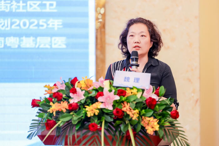 3、廣州醫(yī)科大學(xué)附屬第一醫(yī)院魏理主任代表社區(qū)工作委員會培訓(xùn)基地作報(bào)告。魏理主任介紹自社區(qū)工作委員會成立以來培訓(xùn)基地的發(fā)展?fàn)顩r,包括舉辦多期南粵基層醫(yī)藥賦能班,初步構(gòu)建南粵基層醫(yī)藥賦能項(xiàng)目質(zhì)控體系,啟動(dòng)培訓(xùn)教材的編寫,啟動(dòng)慢阻肺基層篩查項(xiàng)目,同時(shí)培訓(xùn)基地還開展了四屆基層醫(yī)藥技能大賽和首屆基層科普大賽,去年還增加了社區(qū)藥師安全用藥科普演講大賽,還為基層醫(yī)療機(jī)構(gòu)開設(shè)藥物咨詢服務(wù)或藥學(xué)門診提供理論、實(shí)踐學(xué)習(xí)和專業(yè)認(rèn)證。魏理主任還為新一年培訓(xùn)基地的工作計(jì)劃指明方向。