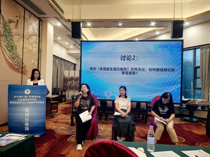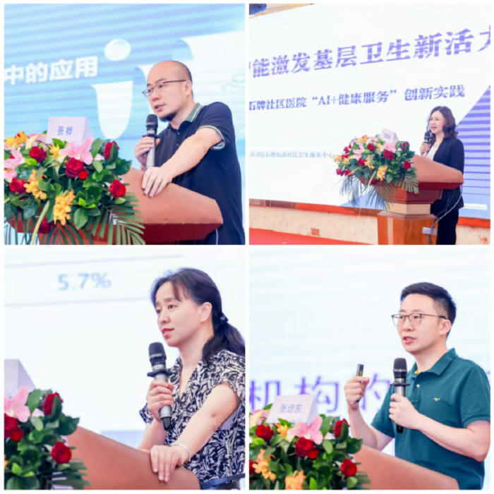 4、主會場還安排了4個(gè)專題報(bào)告。成都市武侯區(qū)簇錦社區(qū)衛(wèi)生服務(wù)中心楊梅主任分享《探索醫(yī)防融合新模式,全科疫苗處方助力社區(qū)健康管理》;天河區(qū)石牌街社區(qū)衛(wèi)生服務(wù)中心范育玲主任以《人工智能激發(fā)基層衛(wèi)生新活力》為題進(jìn)行演講;南方醫(yī)科大學(xué)珠江醫(yī)院的張樺主任和張培東教授,分別就《淺析指南共識引領(lǐng)GLP - 1RA在臨床中的應(yīng)用》和《中國血脂管理指南(基層版)》進(jìn)行解讀。這些報(bào)告聚焦基層醫(yī)療前沿與實(shí)際需求,為參會者帶來一場知識盛宴。在討論環(huán)節(jié),馬興標(biāo)、江俊生、林天海、范穗光、李皓、黃健忠、符曉冰等主任圍繞“如何高效提升社區(qū)醫(yī)療服務(wù)能力”展開討論,各抒己見,為社區(qū)醫(yī)療發(fā)展出謀劃策。