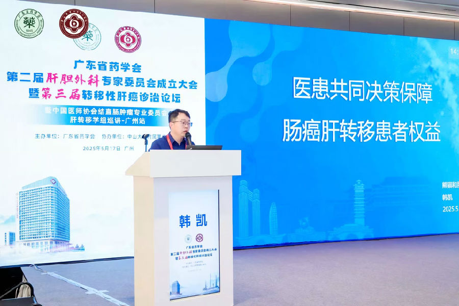熊貓和朋友們患者組織發(fā)起人韓凱先生從熊貓和朋友們的介紹、直腸癌患者的困境以及醫(yī)患共同決策保障患者權(quán)益角度談了結(jié)直腸癌肝轉(zhuǎn)移治療中的共性和困難,講述了醫(yī)患溝通在腫瘤治療中的重要性。