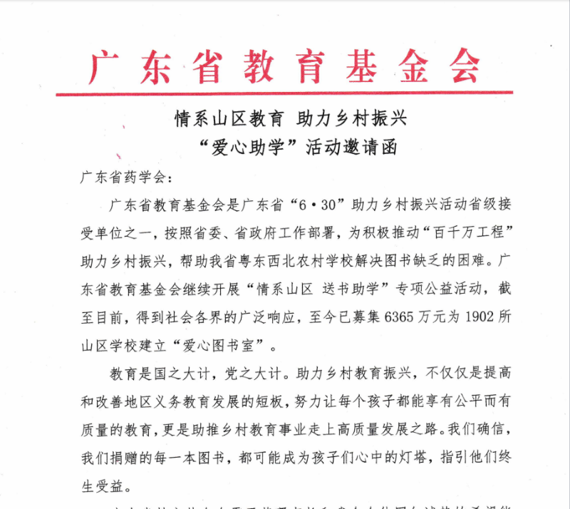 廣東省藥學(xué)會(huì)繼續(xù)積極支持我省“百千萬工程-情系山區(qū)送書助學(xué)”專項(xiàng)公益活動(dòng),助推我省粵東西北鄉(xiāng)村教育事業(yè),支持學(xué)校建設(shè)書香校園,以實(shí)際行動(dòng)為我省革命老區(qū)、邊遠(yuǎn)山區(qū)教育事業(yè)添磚加瓦、奉獻(xiàn)愛心,彰顯社會(huì)責(zé)任與社會(huì)擔(dān)當(dāng)。