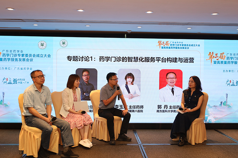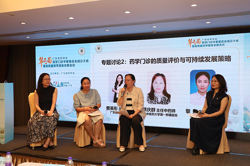 專題討論環(huán)節(jié),廣州醫(yī)科大學(xué)附屬第一醫(yī)院喻鵬久主任藥師、中山大學(xué)附屬第八醫(yī)院李玉珍主任藥師和南方醫(yī)科大學(xué)南方醫(yī)院郭丹主任藥師針對(duì)“藥學(xué)門診的智慧化服務(wù)平臺(tái)構(gòu)建與運(yùn)營(yíng)”展開討論,探討了如何利用信息化、智能化技術(shù)賦能藥學(xué)門診,提升服務(wù)效率與可及性。廣東省人民醫(yī)院曾英彤主任藥師、廣州中醫(yī)藥大學(xué)第一附屬醫(yī)院蔡慶群主任藥師、湛江中心人民醫(yī)院黎娜副主任藥師針對(duì)“藥學(xué)門診的質(zhì)量評(píng)價(jià)與可持續(xù)發(fā)展策略”展開了深入對(duì)話,共同探討如何構(gòu)建藥學(xué)門診質(zhì)量評(píng)價(jià)體系和如何推進(jìn)藥學(xué)門診可持續(xù)發(fā)展的措施。