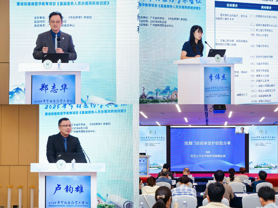 2025年8月23日,廣東省藥學(xué)會(huì)與《今日藥學(xué)》雜志社在廣州舉辦“2025年今日醫(yī)藥學(xué)術(shù)會(huì)議暨省級(jí)繼續(xù)醫(yī)學(xué)教育項(xiàng)目《基層醫(yī)務(wù)人員合理用藥培訓(xùn)班》”,大會(huì)設(shè)置1個(gè)主會(huì)場、6個(gè)分會(huì)場,來自省內(nèi)外的醫(yī)、藥學(xué)專家學(xué)者齊聚一堂,以“打造醫(yī)、藥協(xié)作治療團(tuán)隊(duì),提供最佳藥物治療理念和方案”為宗旨,立足廣州、面向全國,分享交流了現(xiàn)代醫(yī)藥學(xué)的相關(guān)前沿知識(shí)和成果。