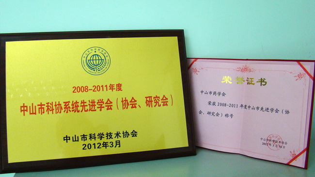 2012年3月16日,在中山市科協(xié)第七屆全委第三次(擴大)會議上,中山市藥學會被評為“2008-2011年度中山市科協(xié)系統(tǒng)先進學會”,并在大會上受到表彰;學會理事長黃冬同志被評為“中山市科協(xié)系統(tǒng)先進工作者”。