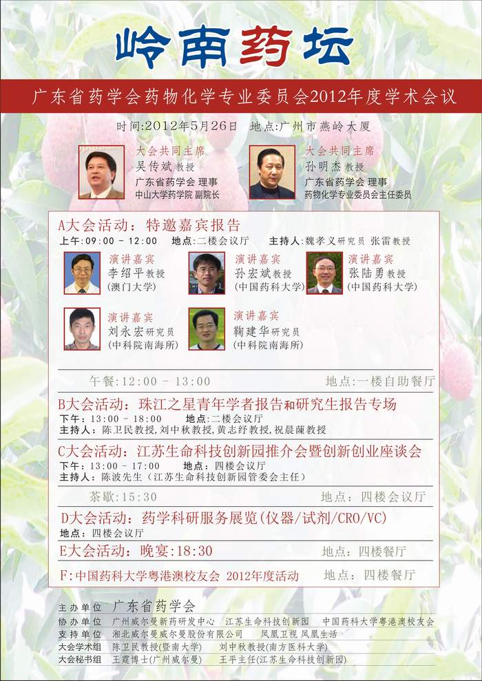 嶺南藥壇2012——廣東省藥學會藥物化學專業(yè)委員會2012年度學術(shù)活動