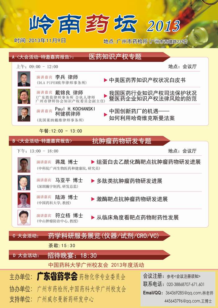 關(guān)于召開本會2013年度學(xué)術(shù)活動《嶺南藥壇2013》的通知暨會議注冊須知