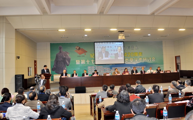 25日,會議開幕式由中國藥學(xué)會藥學(xué)史專業(yè)委員會副主任委員、廣東省藥學(xué)會藥學(xué)史專業(yè)委員會主任委員梅全喜主持,中國藥學(xué)會藥學(xué)史專業(yè)委員會主任委員郝近大致開幕詞,蘄春縣人民政府縣長趙少蓮和中國藥學(xué)會副秘書長陳兵教授講話,蘄春縣人大副主任王劍宣讀李時珍逝世420周年紀(jì)念文。開幕式上還放映了由健康衛(wèi)視攝制的《本草綱目》大型文獻(xiàn)紀(jì)錄片——從“艾”開始,并舉行了由梅全喜教授主編、中國中醫(yī)藥出版社出版的《艾葉的研究與應(yīng)用》新書首發(fā)式暨贈書儀式,梅全喜教授向蘄春縣李時珍中醫(yī)藥圖書館、蘄春縣李時珍紀(jì)念館及參會代表贈書。出席大會的中國藥學(xué)會副理事長、中國中醫(yī)科學(xué)院副院長黃璐琦教授、中國中醫(yī)科學(xué)院中國醫(yī)史文獻(xiàn)研究所萬芳研究員、安徽中醫(yī)藥大學(xué)副校長彭代銀教授,臺灣中國醫(yī)藥大學(xué)謝云忠教授,湖南中醫(yī)藥大學(xué)藥學(xué)院原院長李鐘文教授、南京中醫(yī)藥大學(xué)醫(yī)史文獻(xiàn)研究所副所長陳仁壽教授以及廣東省藥學(xué)會藥學(xué)史分會主委梅全喜教授、副主委趙中振教授、曹暉教授等做了精彩的學(xué)術(shù)報告。 26日上午全體代表參加了第23屆李時珍中藥材交易會開幕儀式,并參觀了李時珍醫(yī)藥集團(tuán)、李時珍紀(jì)念館及李時珍陵園,向李時珍墓前敬獻(xiàn)花籃,追思醫(yī)圣的豐功偉績。