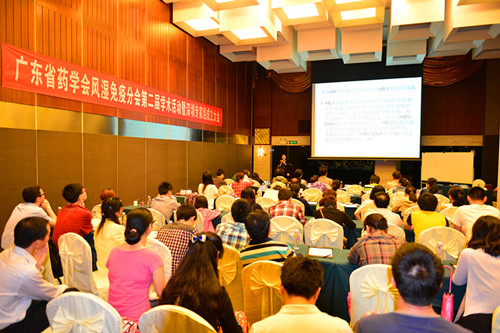 開幕式后,戴冽主任委員、王慶文組長以及專家委員會副主任委員潘云峰教授圍繞“風(fēng)濕病合并乙肝患者的用藥”主題分別做了學(xué)術(shù)報(bào)告,會議特別邀請了廣東省人民醫(yī)院感染科陳學(xué)福教授介紹合并慢性乙肝感染的接受化療或免疫抑制劑治療人群的抗病毒治療新觀點(diǎn)。現(xiàn)場學(xué)術(shù)討論氣氛熱烈,大大提高了在場風(fēng)濕科醫(yī)生對這類人群免疫抑制劑治療用藥及抗病毒治療用藥的認(rèn)識,大家普遍反映收獲很大。(圖/文 本會風(fēng)濕免疫用藥專家委員會供)