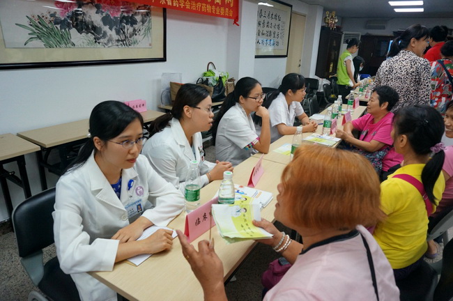 2015年9月11日,第二次相約社區(qū)行活動在廣州市越秀區(qū)六榕社區(qū)舉辦,此次痛風宣教活動由副主委李國豪、楊西曉、尹一子三位專家牽頭,廣州市第一人民醫(yī)院、南方醫(yī)科大學南方醫(yī)院、廣州醫(yī)科大學附屬腫瘤醫(yī)院、廣州軍區(qū)廣州總醫(yī)院攜手參與。廣東省藥學會秘書長鄭志華出席活動并講話,專委會主任委員吳新榮教授以及多家醫(yī)院的藥劑科主任作為專家到場為群眾進行咨詢、講解。為了讓公眾更好地了解關于痛風的醫(yī)學知識,會議還邀請了廣東省人民醫(yī)院林璐藥師為群眾講解了《痛風病的起因和防治知識健康教育講座》,通過授課,居民們了解了痛風的發(fā)病原理及對身體的危害、食物中的嘌呤分類以及幾個服藥的誤區(qū)。講座結束后,志愿者們還在現(xiàn)場免費為聽眾檢測尿酸和派發(fā)相關資料。前來聽課的社區(qū)居民對此次宣講活動非常感興趣,所有專家咨詢臺都被圍得水泄不通。