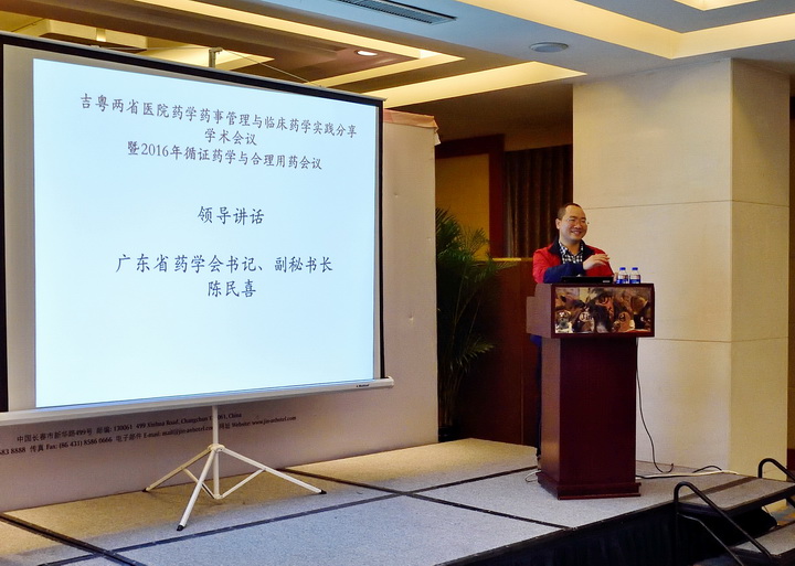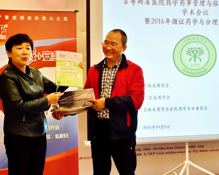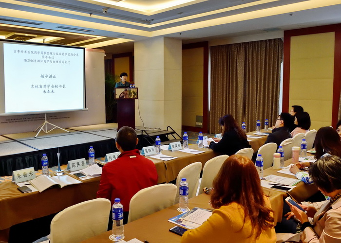 吉林省藥學會朱春未秘書長和廣東省藥學會陳民喜專職副秘書長分別在開幕式上致詞。會議由吉林省藥學會醫(yī)院藥學專委會付秀娟主任委員主持。