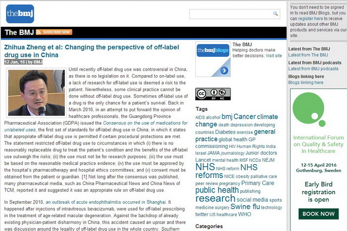 《英國(guó)醫(yī)學(xué)雜志》刊登廣東省藥學(xué)會(huì)有關(guān)超說(shuō)明書用藥工作文章