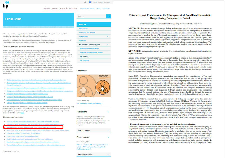 國際藥學聯(lián)合會(FIP)近日在其官方網(wǎng)站(https://www.fip.org)“外科藥學共識聲明(Consensus statements on surgical pharmacy)”專欄發(fā)布了由南方醫(yī)科大學南方醫(yī)院藥學部李亦蕾主任牽頭撰寫的《圍手術(shù)期非血液制品止血藥物應(yīng)用管理專家共識(廣東)》(Chinese...