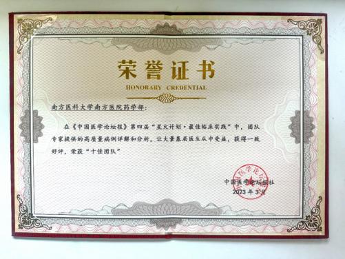 南方醫(yī)院藥學(xué)部榮獲“星火計劃-2022最佳臨床實踐”等榮譽稱號