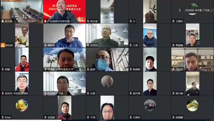 線上參會人員2022年12月17日,廣東省藥學(xué)會第十一屆藥物化學(xué)專業(yè)委員會成立大會以線上線下結(jié)合的方式在東莞東陽光藥業(yè)有限公司召開。會議由廣東省藥學(xué)會主辦、東莞東陽光藥業(yè)有限公司承辦。成立大會由中山大學(xué)歐田苗教授主持,廣東省藥學(xué)會陳民喜書記兼執(zhí)行秘書長代表廣東省藥學(xué)會致辭并宣讀第十一屆藥物化學(xué)專業(yè)委員會任職決定,廣...