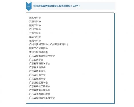 2022年度科協(xié)系統(tǒng)政務(wù)信息建設(shè)工作先進(jìn)單位近日,廣東省科協(xié)辦公室發(fā)布了《關(guān)于公布2022年度省科協(xié)系統(tǒng)政務(wù)信息建設(shè)工作先進(jìn)單位和優(yōu)秀信息員名單的通知》(粵科協(xié)〔2022〕61號),共評選產(chǎn)生2022年度科協(xié)系統(tǒng)政務(wù)信息建設(shè)工作先進(jìn)單位22個、優(yōu)秀信息員28名。廣東省藥學(xué)會獲評“先進(jìn)單位”,學(xué)會秘書處羅思宇同志獲評...