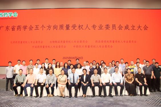 廣東省藥學會相關(guān)領(lǐng)導、五個方向?qū)N瘯魅挝瘑T、顧問、副主任委員和秘書合影2025年4月24日,由廣東省藥學會主辦的 “五個方向質(zhì)量受權(quán)人專業(yè)委員會成立大會暨專題培訓”在珠海市香山會議中心順利召開。本次會議旨在貫徹落實廣東省藥品監(jiān)督管理局工作部署,進一步推動藥品質(zhì)量受權(quán)人管理工作的專業(yè)化、精細化,搭建學術(shù)交流平臺,培...