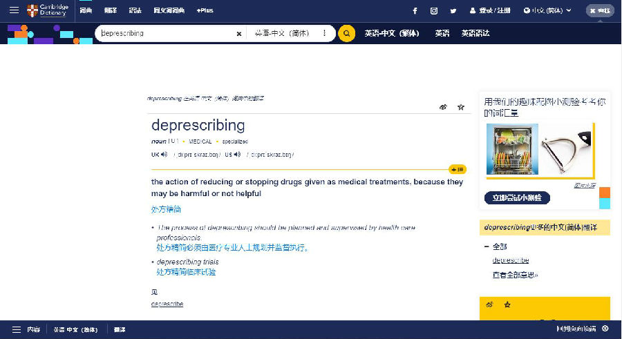 廣東省藥學(xué)會(huì)首譯的“處方精簡(jiǎn)(deprescribing)”被《劍橋詞典》收錄