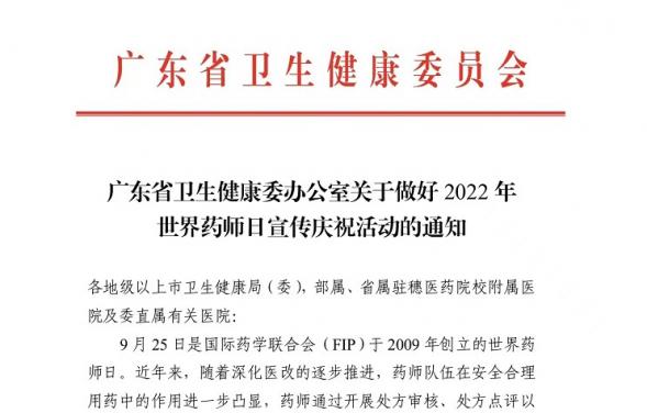 廣東省衛(wèi)生健康委發(fā)文部署2022年世界藥師日宣傳慶?;顒?dòng)