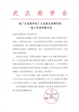 武漢藥學(xué)會致廣東省藥學(xué)會廣大奮戰(zhàn)在疫情防控 一線工作者的慰問信