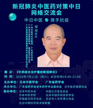 2020年7月11日北京時間19:00-21:30、東京時間(20:00-22:30),由本會與日本中醫(yī)學會共同主辦,廣東省藥學會老年藥學專業(yè)委員會、日中醫(yī)藥健康協(xié)會共同承辦的“新冠肺炎中醫(yī)藥對策中日網(wǎng)絡交流會”成功舉辦。會議由暨南大學藥學院聶紅教授主持,日中醫(yī)藥健康協(xié)會馬驥副會長作大會翻譯。據(jù)悉,這是日本中醫(yī)學會...