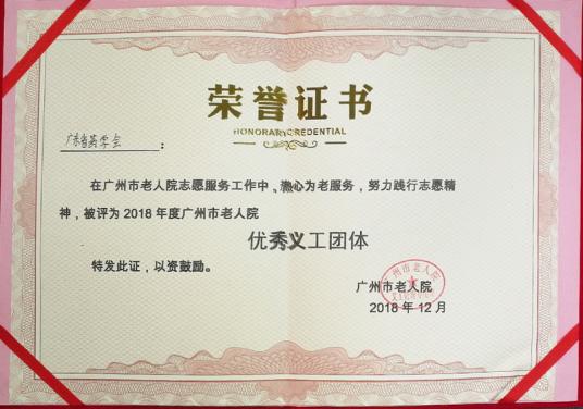廣東省藥學會被廣州市老人院評為“2018年度優(yōu)秀義工團體”