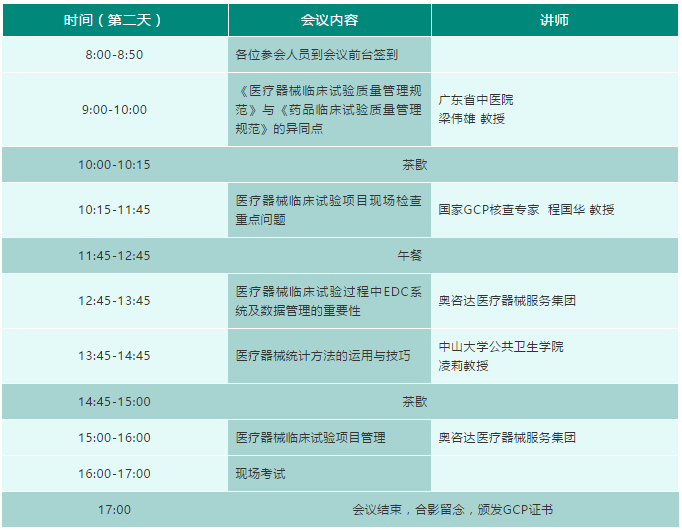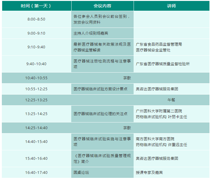 為給從事醫(yī)療器械人員、臨床試驗研究者和需系統(tǒng)性學(xué)習(xí)臨床試驗人員普及醫(yī)療器械現(xiàn)行法規(guī),搭建醫(yī)療器械監(jiān)管政策和經(jīng)驗分享、產(chǎn)業(yè)創(chuàng)新發(fā)展信息交流傳遞和增進(jìn)友誼的平臺,推進(jìn)粵港澳大灣區(qū)醫(yī)療器械行業(yè)創(chuàng)新發(fā)展。廣東省藥學(xué)會、奧咨達(dá)醫(yī)療器械服務(wù)集團(tuán)決定于2018年10月27-28日在深圳召開“2018粵港澳醫(yī)療器械臨床試驗高峰論壇暨GCP培訓(xùn)班”。本次課程非常榮幸邀請到廣州醫(yī)科大學(xué)附屬二院、南方醫(yī)科大學(xué)、廣東省中醫(yī)院、中山大學(xué)公共衛(wèi)生學(xué)院、國家GCP核查專家等數(shù)十位專家老師,內(nèi)容包括:
