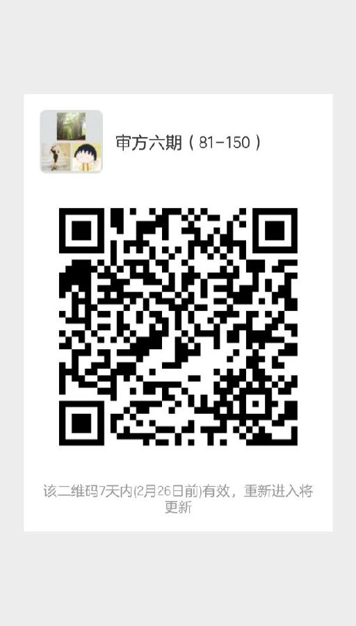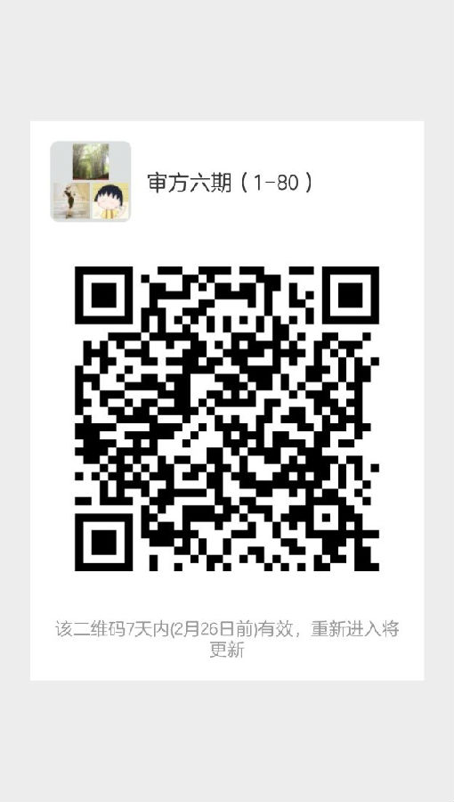 三、請按照錄取名單編號,按編號盡快掃描下圖二維碼加入學員微信群,1-80號加入微信群“審方六期(1-80)”,81-152號加入微信群“審方六期(81-152)”,培訓相關事宜會在群上通知,學員入群后將群昵稱更改為“編號 姓名 醫(yī)院”,歡迎加入審方班大家庭?。。?/span>