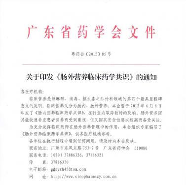 各醫(yī)療機(jī)構(gòu):臨床營(yíng)養(yǎng)是繼麻醉、消毒、抗生素之后外科領(lǐng)域的第四個(gè)最具里程碑意義的發(fā)明。臨床營(yíng)養(yǎng)又分為腸內(nèi)、腸外營(yíng)養(yǎng)。本會(huì)曾于2012年6月8日印發(fā)了《腸內(nèi)營(yíng)養(yǎng)臨床藥學(xué)共識(shí)》,在行業(yè)內(nèi)取得較好的反響。腸外營(yíng)養(yǎng)因其能快速補(bǔ)充患者營(yíng)養(yǎng)而受到重視,但又因其安全性要求較高而備受關(guān)注。為充分發(fā)揮臨床藥師在腸外營(yíng)養(yǎng)管理中的作用,本...